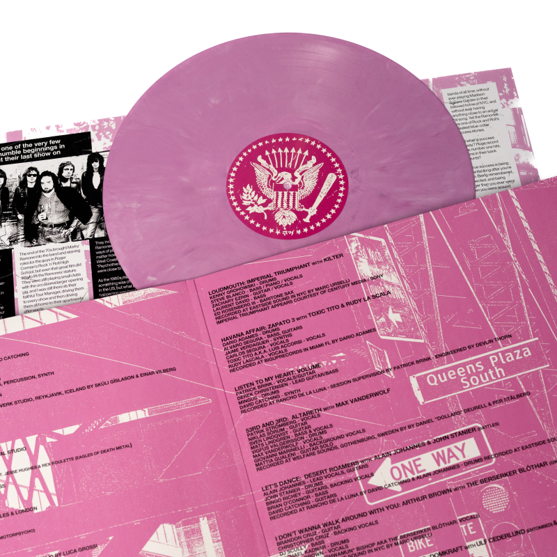 Gatefold LP on magenta white marble vinyl with printed 4-panel insert and Redux Series O-Card